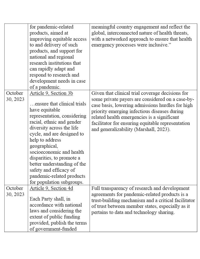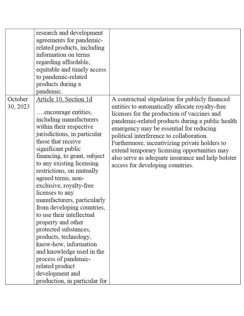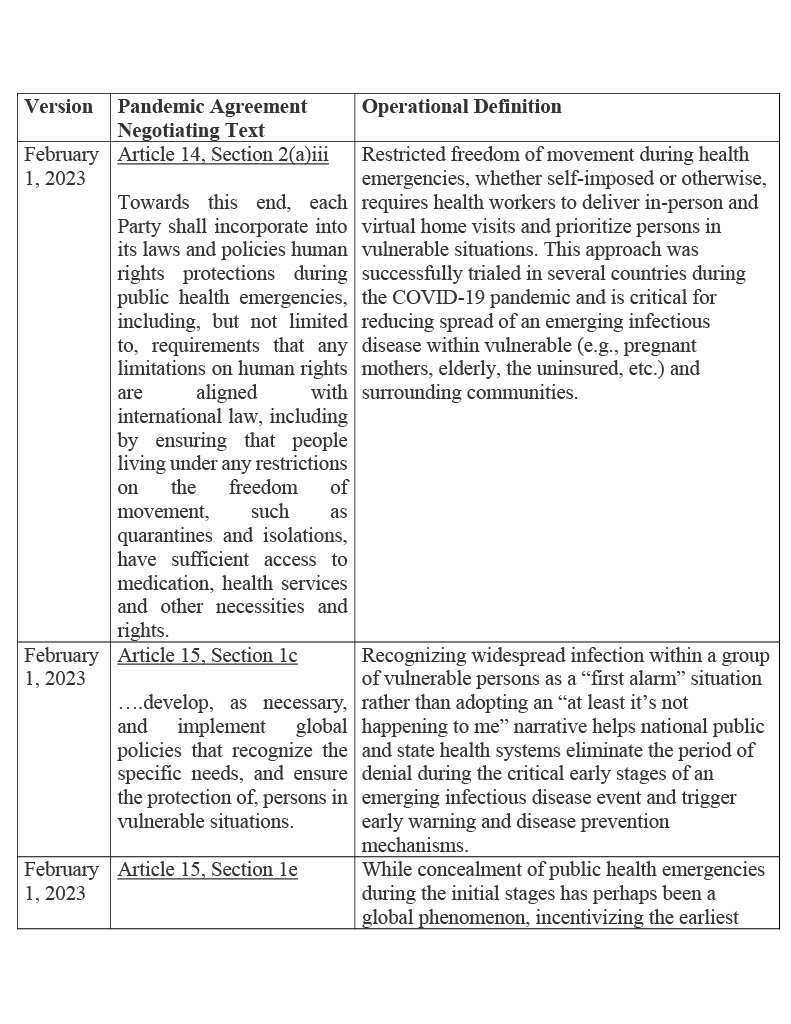 Table 1 below lists functional stipulations from different versions of the pandemic agreement negotiating text, along with viable operational definitions for added context:
