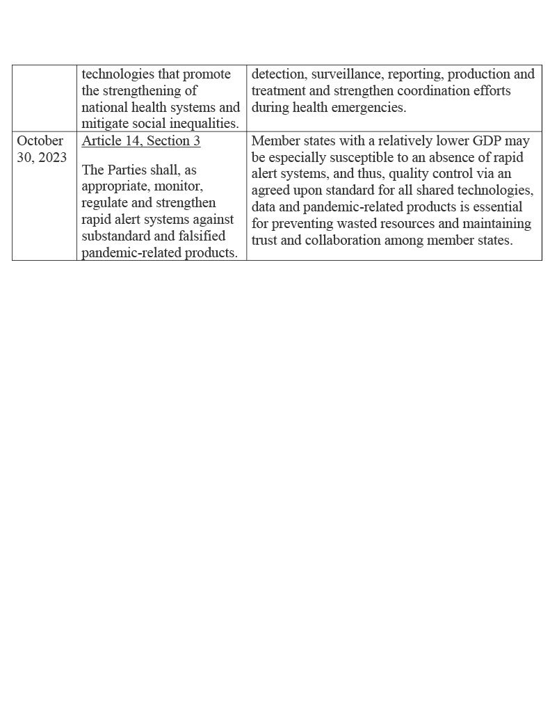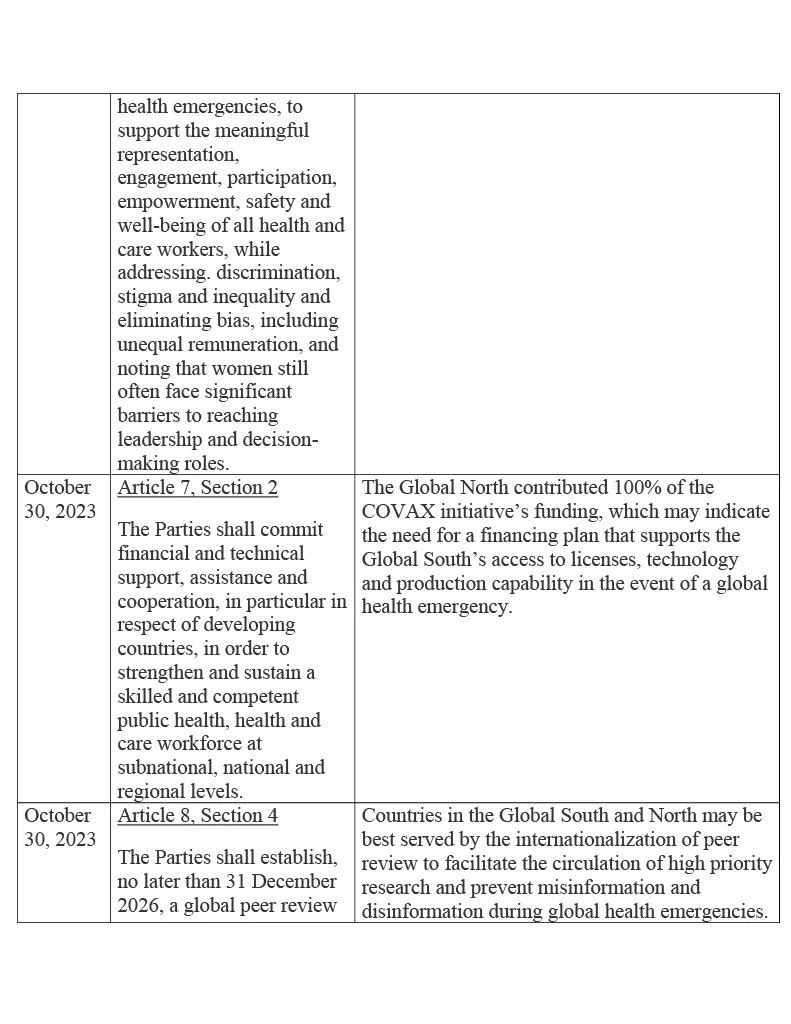 Given the acknowledgement that pandemic-era inequities suffered largely within the Global North and South were key proponents of the spread of COVID-19, and that the open-endedness of the previous agreement was a barrier to collaboration and compliance, the Zero Draft of the pandemic agreement explicitly discusses equity as one of its guiding principles and rights: