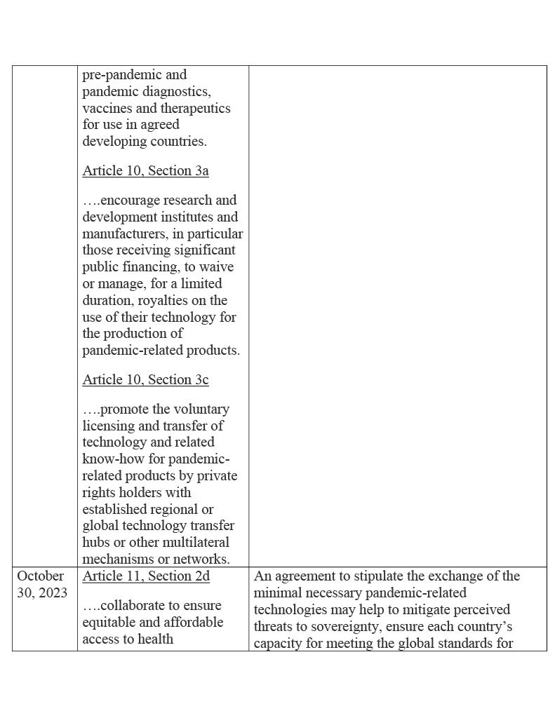 Proposal for negotiating text of the WHO Pandemic Agreement, 30 October 2023 for the consideration of the Intergovernmental Negotiating Body at its fourth meeting. World Health Organization, A/INB/7/3.